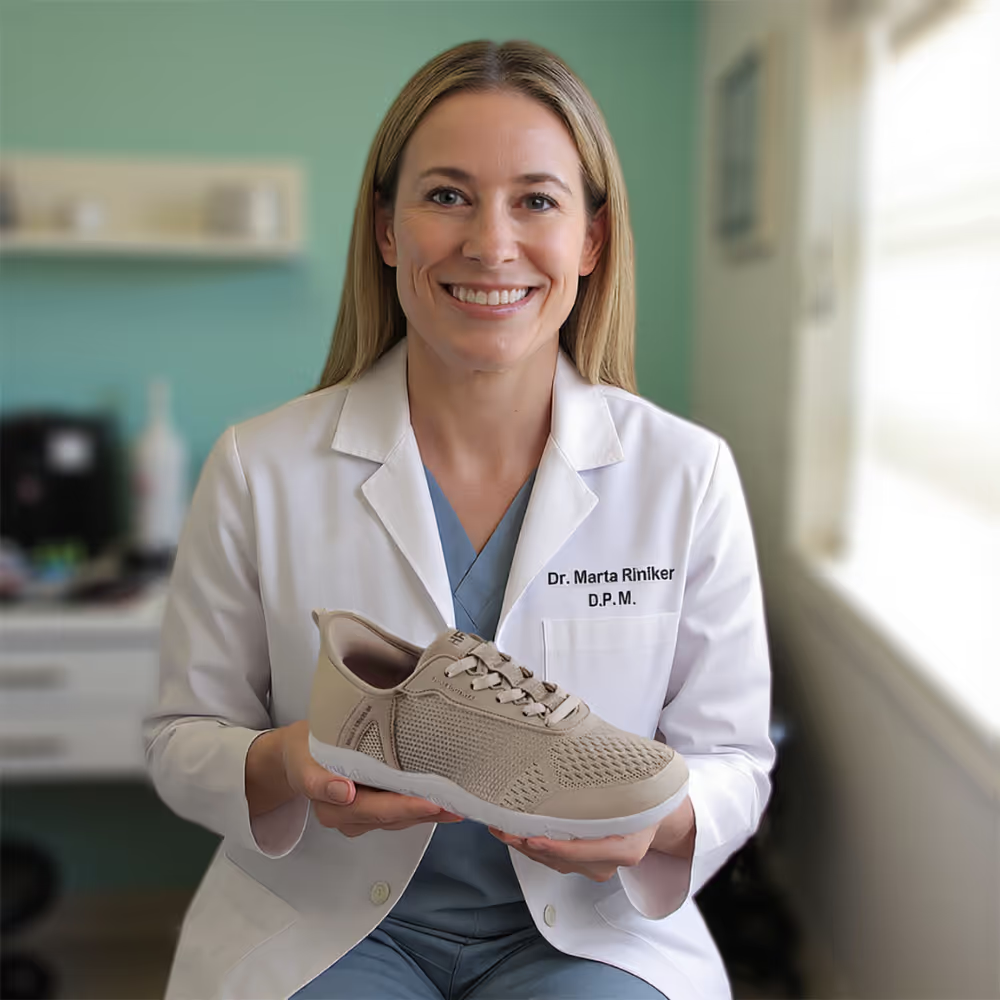 Dr. Marta Riniker specifically recommends HF Stride for healthcare professionals. The design addresses the unique challenges of standing, walking, and pivoting for hours.
