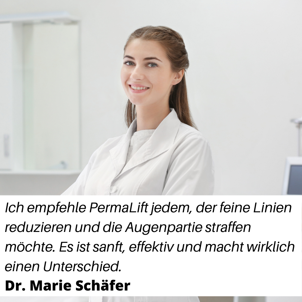 - Anwendung : Um PermaLift® zu verwenden, reinigen Sie zunächst Ihr Gesicht und tupfen Sie es trocken. Tragen Sie mit Ihrem Ringfinger eine kleine Menge Serum auf die Augenpartie auf und tupfen Sie es sanft ein, ohne zu reiben. Für beste Ergebnisse verwenden Sie PermaLift® zweimal täglich, morgens und abends.